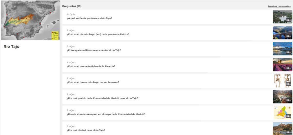 Aquí os mostramos algunas de las preguntas de los dos Kahoot que realizan como actividad previa a la excursión, uno sobre el río Tajo y otro sobre el agua.