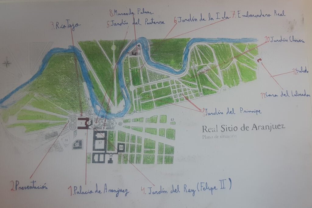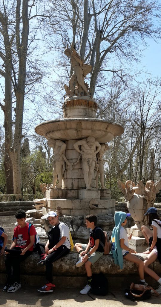 Durante toda la excursión se llevan pequeñas explicaciones, algunas por parte del profesorado, tales como la flora y la fauna del real sitio, sobre el riego y dominio de las canalizaciones para mantener ese vergel en tan bello estado y otras de parte de sus compañeros. Alumnos que desde la asignatura de Mitología han trabajo alguna de sus fuentes y preciosos mitos, la mayoría de origen griego.