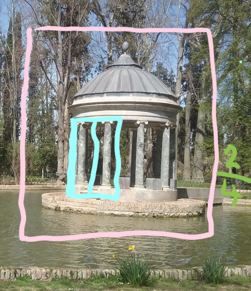 Durante la excursión los alumnos tienen que realizar varias fotos, en las que tienen que identificar fracciones en el paisaje, desde la asignatura de Matemáticas les hacemos hincapié en dos detalles, las partes iguales necesarias en el concepto de fracción y a qué llamamos la unidad. En la última parada frente al jardín Chinesco, editan las fotos, que luego al llegar al Colegio la comparten con su asesor. Aquí varios ejemplos de la actividad.